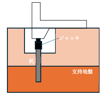 比較的浅い部分に支持層がある場合や地盤沈下が収束している場合に施工できます