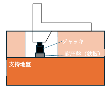 耐圧盤を反力にしてジャッキアップして基礎を水平になるように持ち上げます。